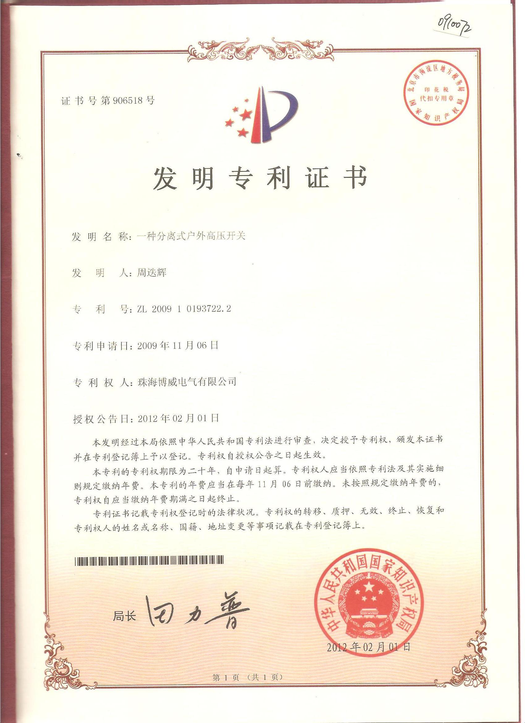 (發(fā)明)一種分離式戶外高壓開關(guān)