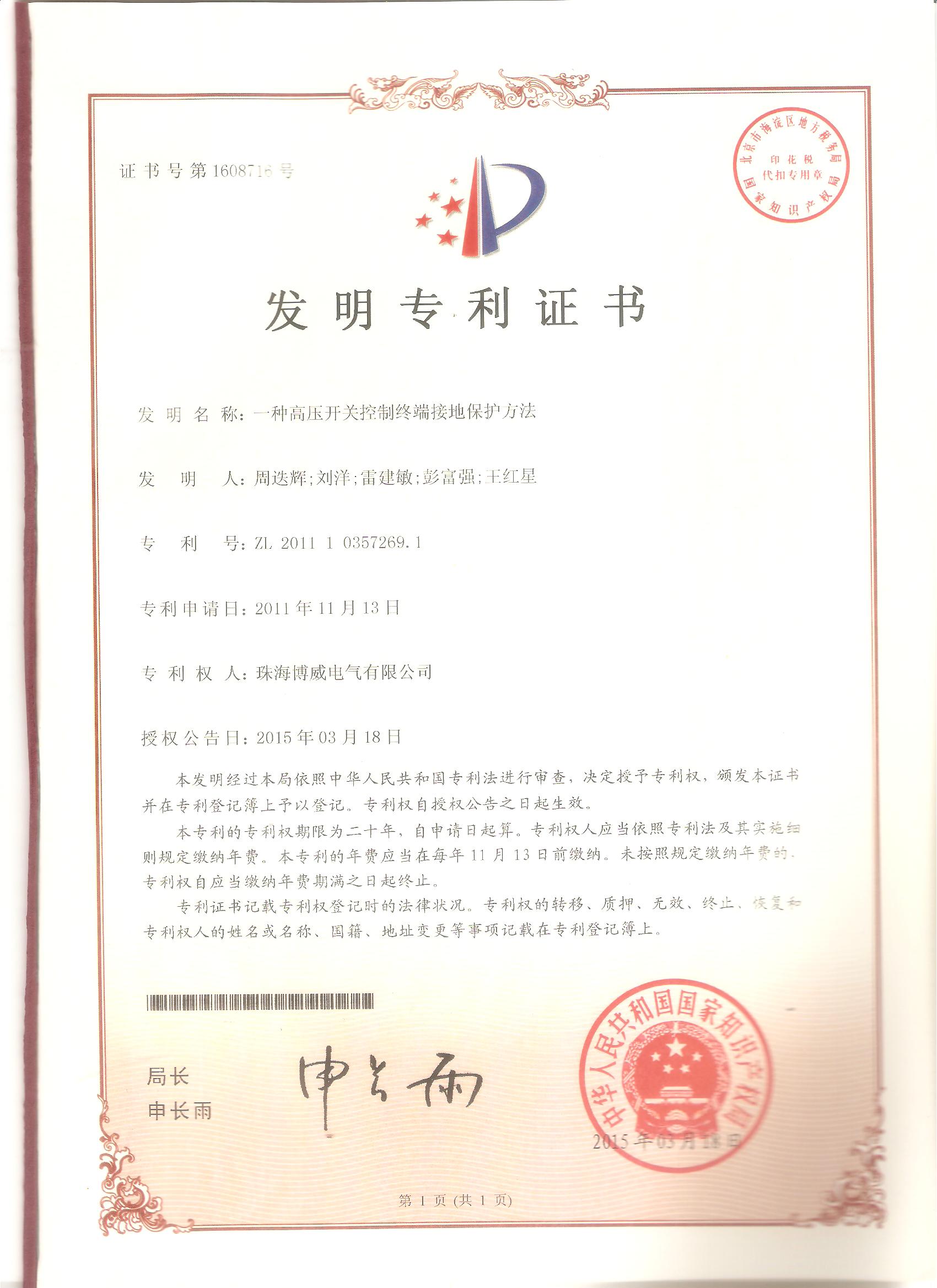 (發(fā)明)一種高壓開關(guān)控制終端接地保護(hù)方法