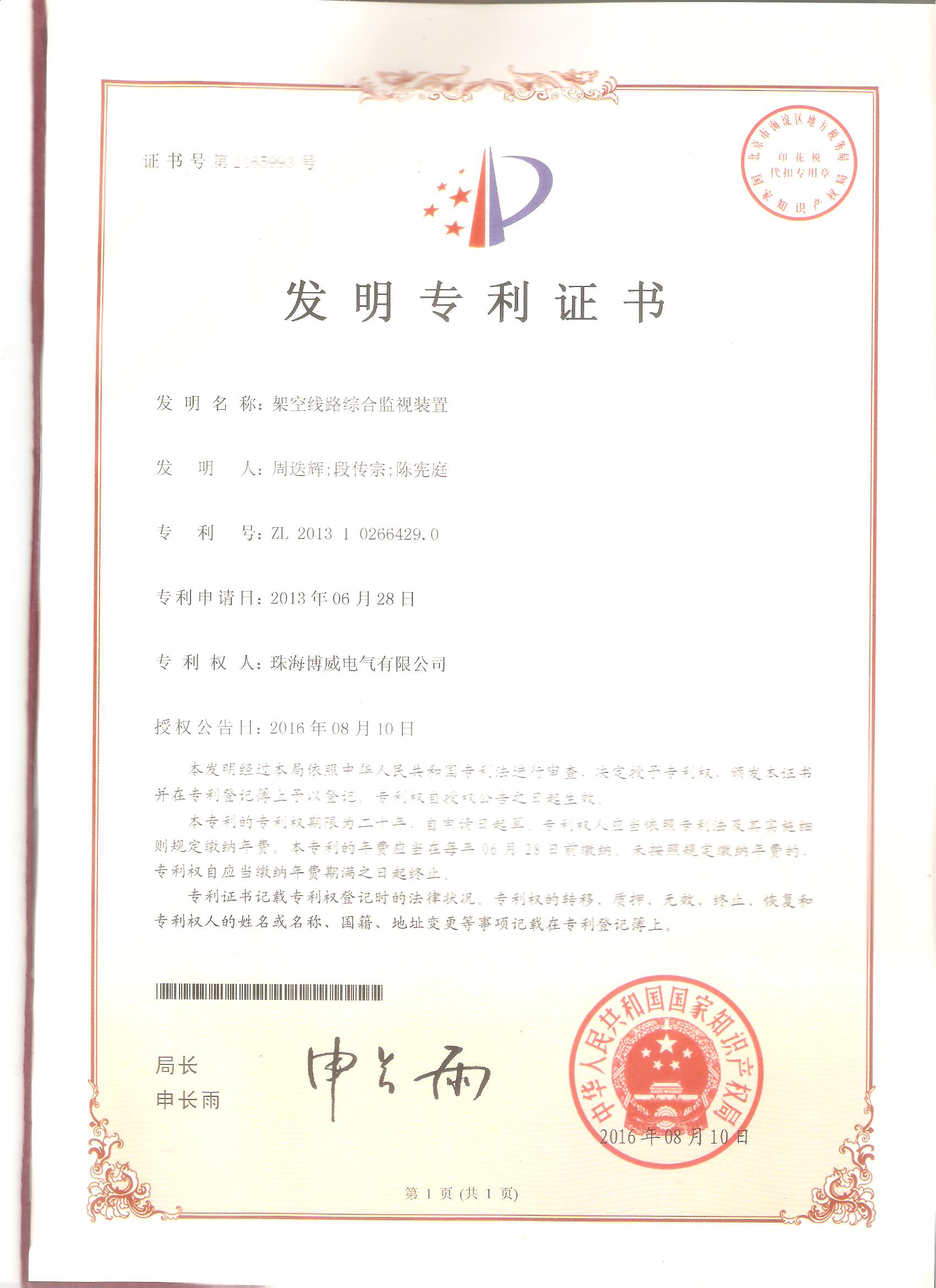 (發(fā)明)架空線路綜合監(jiān)視裝置