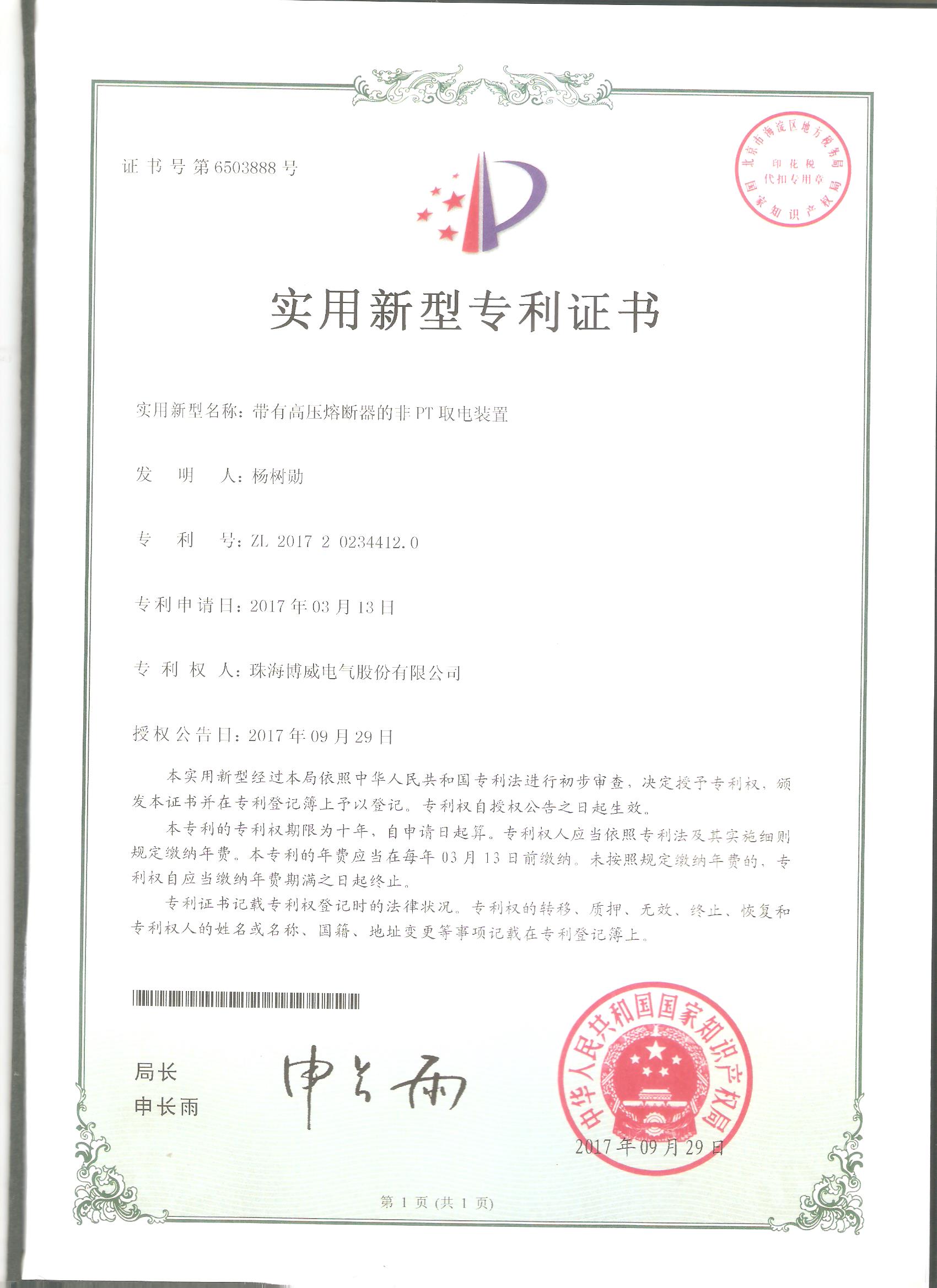 (實(shí)用新型)帶有高壓熔斷器的非PT取電裝置