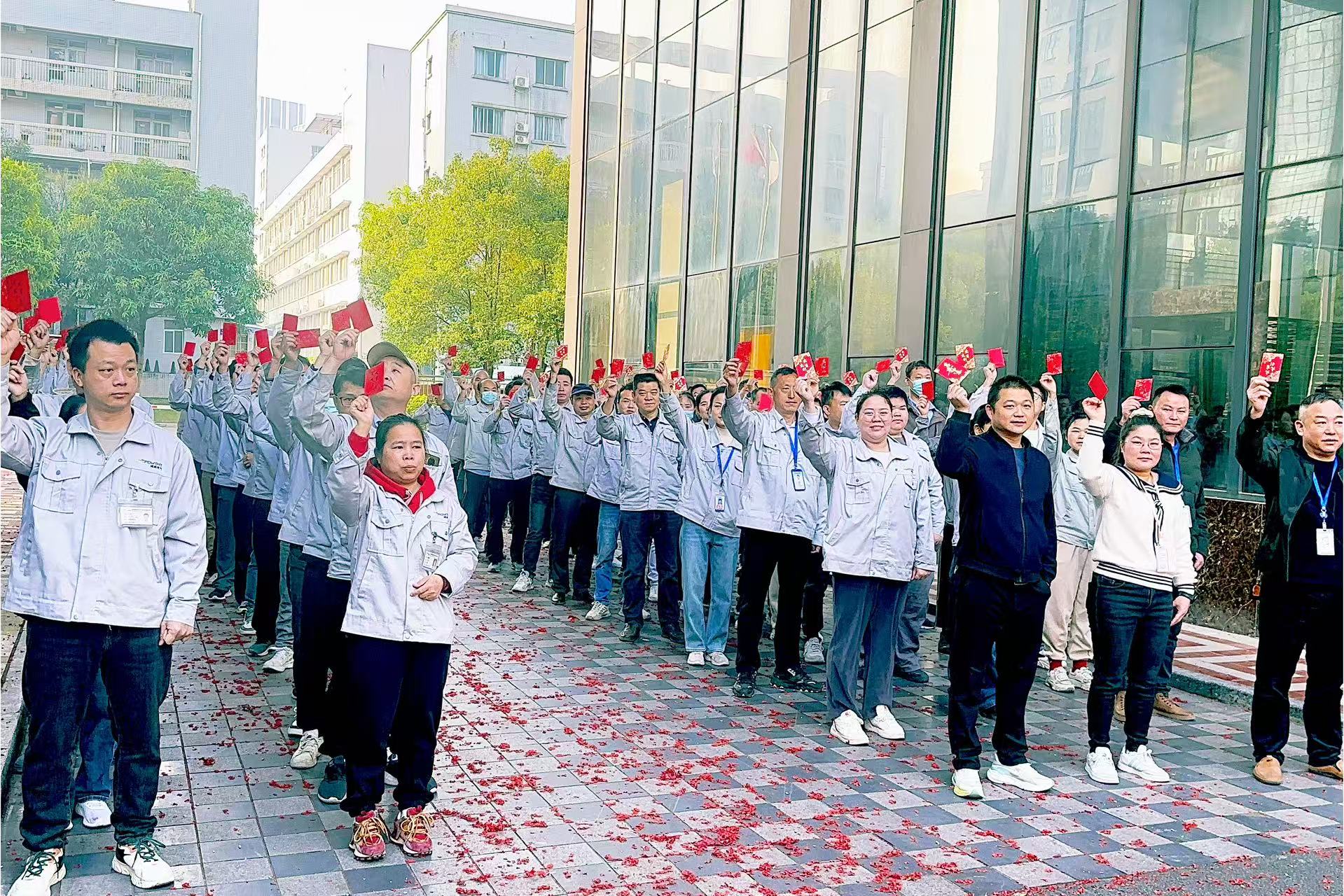 "每一道焊縫都是承諾,每項專利皆是戰書!"周迭輝董事長在禮炮轟鳴中,向奮戰全國各地的員工致敬。站在“中國智造2025”戰略新起點上,博威電氣將繼續深化技術研發體系,全面加速智能化升級,憑借創新驅動打造核心競爭力,將工匠精神貫穿每一個生產環節。現場雷鳴般的掌聲中,周董特別宣布,公司已為全體員工準備了開工利是,傳遞新春的祝福,激勵士氣,鼓舞人心,齊心協力譜寫企業高質量發展的宏偉藍圖。