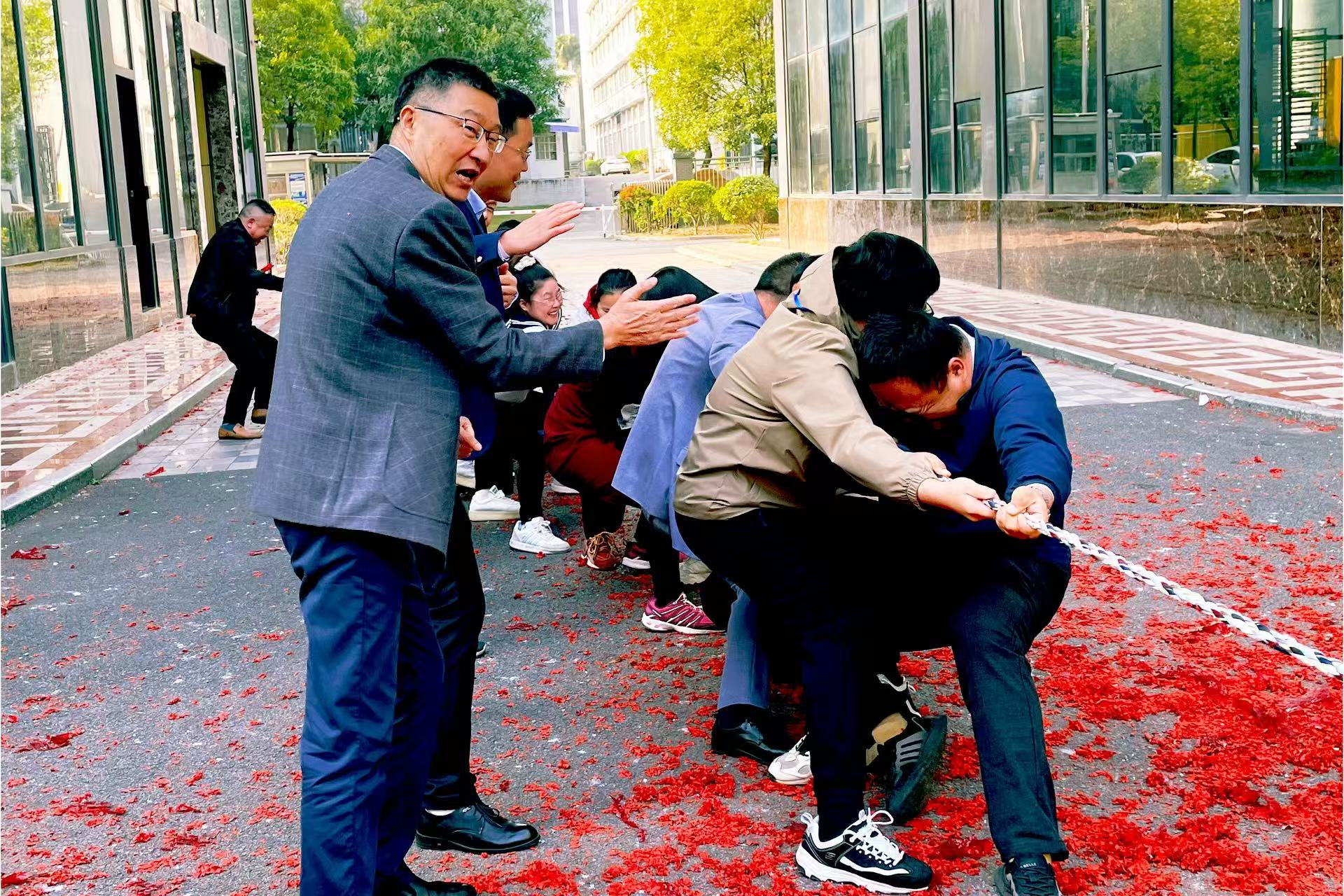 哨聲劃破長空,八支隊伍在拔河繩兩端展開力量角逐。繩索緊繃如弦,吶喊聲與助威聲交織成激昂樂章,賽場上蒸騰著拼搏的熱浪。客戶服務部默契配合,連勝多局贏得冠軍,全員歡呼聲直沖云霄。周董事長頒發定制獎品,并寄語:“拔河賽場的寸土必爭,恰如市場競爭中的全力以赴,唯有同心同向,方能贏得喝彩!”