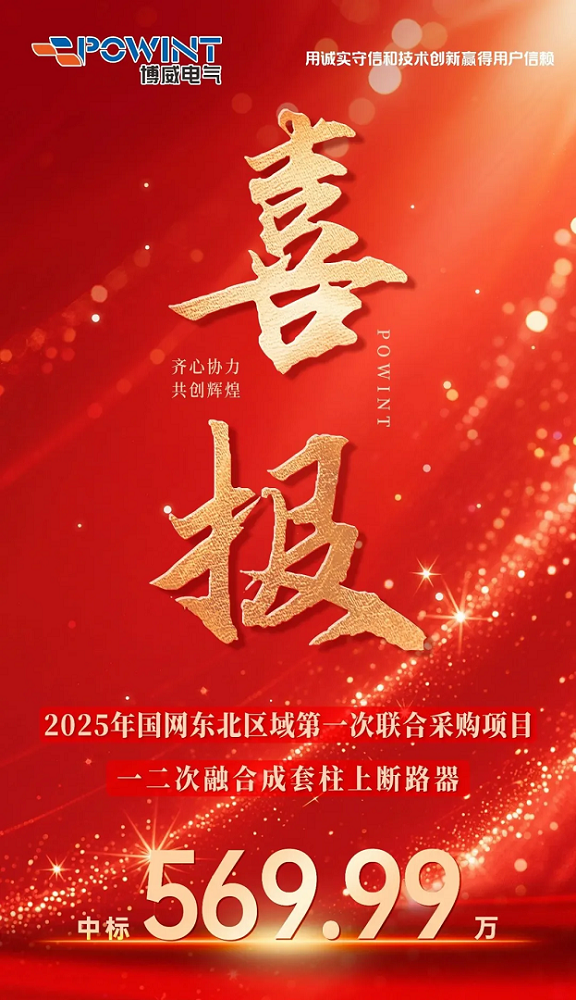近日,博威電氣在國家電網"2025年東北區域一二次融合成套柱上斷路器協議庫存第一次聯合采購項目"中成功中標,中標金額569.99萬元。